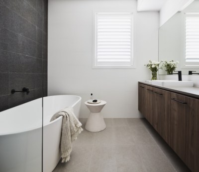 The inspiration for this project was ‘Mid Century Modern’. It has retro design elements within the furniture and accessories; however it has been modernised via the use of edgy colours and joinery design. By bordering the Cinder Matt with Nataio Walnut Woodmatt, we have created a sleek contemporary Kitchen, Butler’s Pantry, and Laundry. Through utilising only the Nataio Walnut Woodmatt in the wet areas has allowed for warmth to be added to these typically cold spaces.