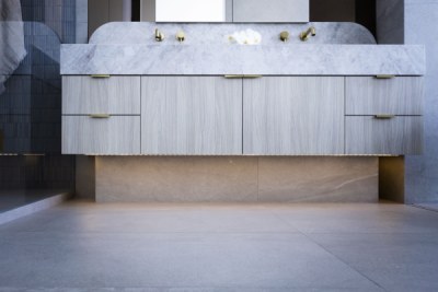 Our brief to the client was to create a Miami Beach meets modern coastal aesthetic. By re orientating the entire apartment layout to maximise the views over Port Phillip Bay. We selected a 2 Pac Dulux 1/2 Strength Whisper White in a square edge profile to compliment the Lorde White stone bench top to create instant luxury. The master ensuite joinery selection was Soft Walnut in a square profile to compliment the natural environmental palette outside.