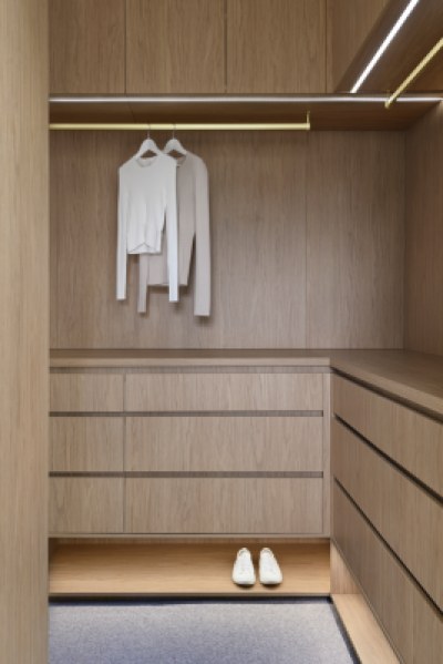 Our contemporary Hamptons project combines modern conveniences and features with classic Hamptons style to achieve a timeless home design. The walk in wardrobe in the Master Suite boasts ample storage with features clean, contemporary lines and integrated LED lighting to create the ultimate wardrobe.