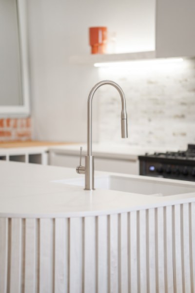Clover Homes Design HQ is based in Concord. Not just your average colour studio, the space was designed to make you feel at home from the moment you walk in. From a Living area, Dining area to Kitchen and Bathroom the space feels warm and inviting. The Kitchen being the main show piece of the Studio, including an inwall coffee machine, free standing cooktop and oven, pop up power point, electric push to open cupboard and a curved Island bench being some of the main features of this Kitchen.