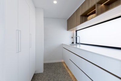 Located in the beautiful suburb of North Beach, this home embraces modern coastal with an industrial flair. The combination of Polytec's Ultra White Venette and Prime Oak Woodmatt are a timeless colour palette creating a fresh natural vibe. The result, a comfortable and relaxing home where you can retreat, kick back and enjoy the view.