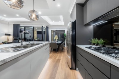 The Charpente is a beautiful home, perfect for retirees looking to downsize. The clients wanted to live smaller without compromising on luxury, and our team were happy to make their home dreams come true. The Charpente explores the possibilities of cladding within the home, using a variety of different profiles within the design. Throughout the home, beautiful timber handrails are integrated into the design, becoming a part of the home and supporting its inhabitants.