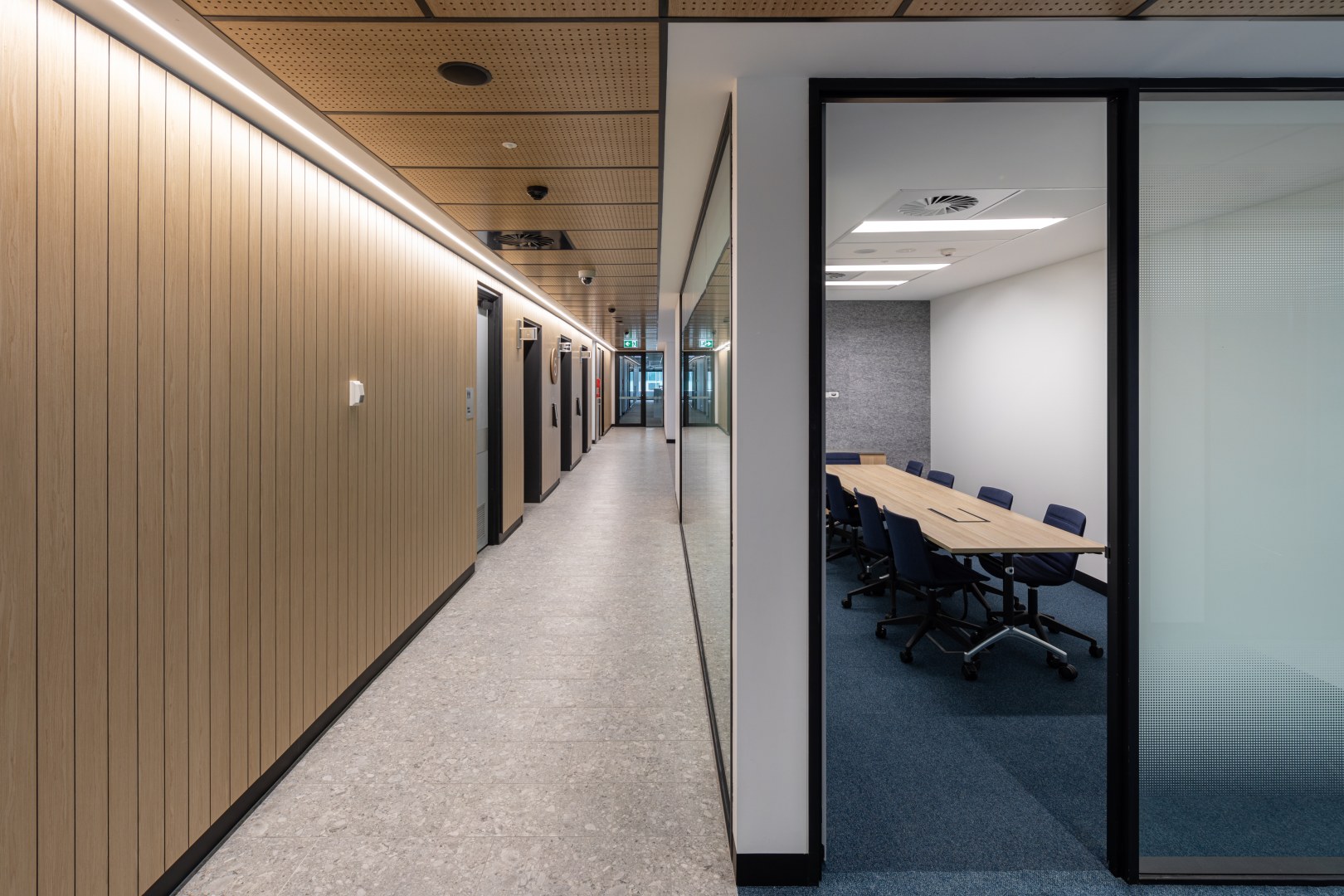 Integrated landscaping and lighting have transformed a once lifeless courtyard into a vibrant public space with improved pedestrian connections underpinned by a clear wayfinding system. New end of trip facilities in the basement includes secure bike storage and repair stations, electric bike charging stations and high quality changeroom facilities with drying cupboards, lockers, towels and ironing stations. Colourful murals and signage to add interest to an otherwise dark basement area.