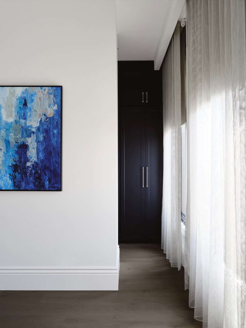 Dwelling 1 of 2 properties on the block, this home was inspired by the traditional Hamptons style. A strong contrast between light and dark colors, textures, and materials layered this dream home with character.
