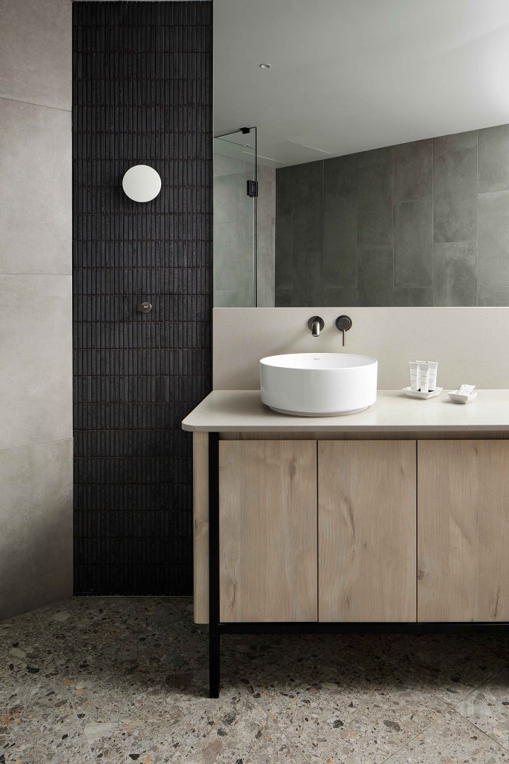 Executive Inn is a newly upgraded suburban hotel, exuding sophistication and elegance, welcoming guests with its modern and elevated design. Existing sandstone walls are accented with thermolaminated panels and sleek metal details, drawing the eye towards the magnificent ceiling feature in the foyer. Overall, the new upgrade is a masterful blend of form and function, seamlessly integrating style and comfort.