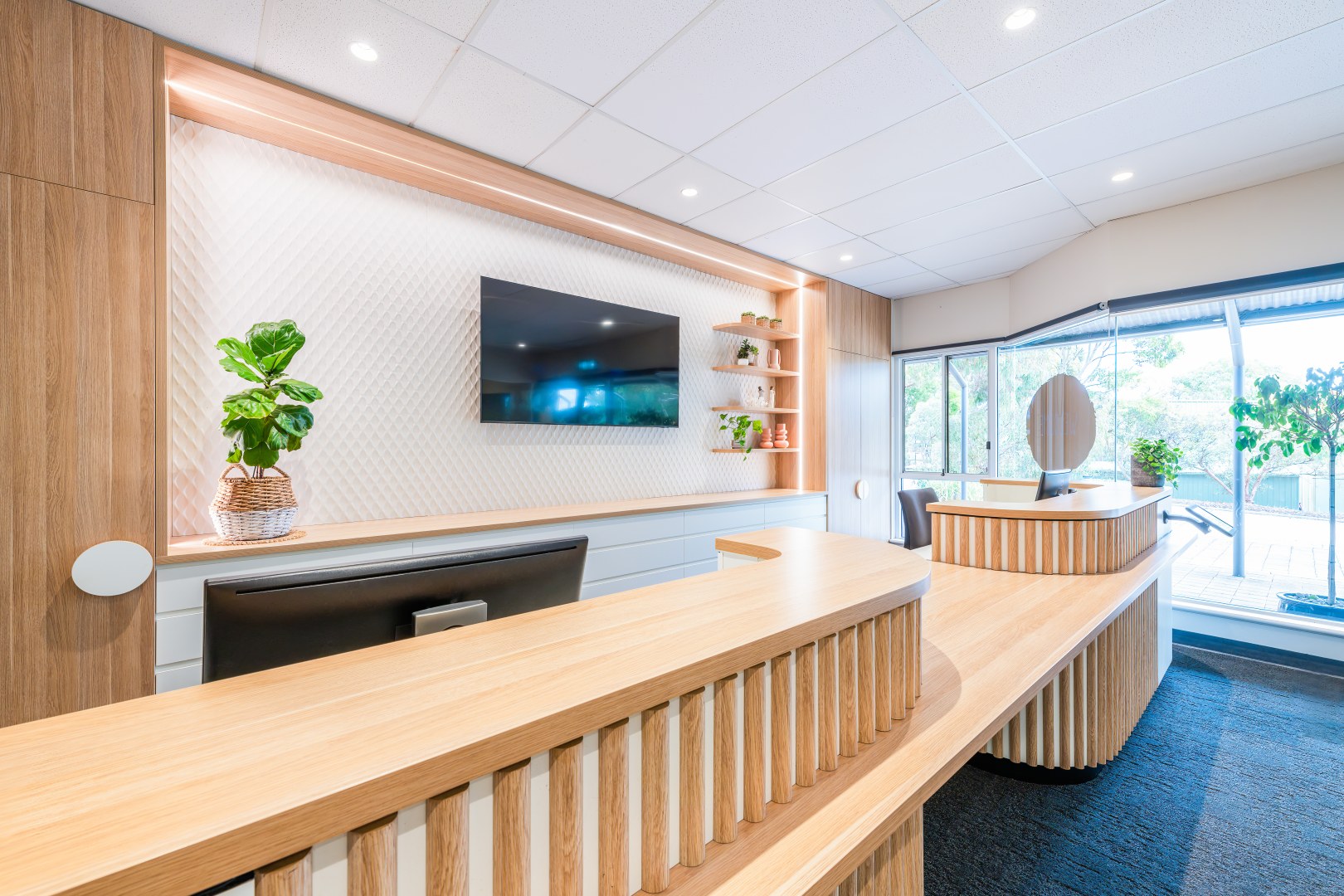 Materiality was key to creating a warm and welcoming reception area for this primary school. We created an aesthetic that is both inviting and professional by incorporating the natural beauty of timber offset by crisp, light tones and linear forms. The selected materials allowed us to create shape, texture and levels whilst delivering a design durable enough for an educational environment that is responsive to workflow and operations of a school and is, most importantly, accessible for all.