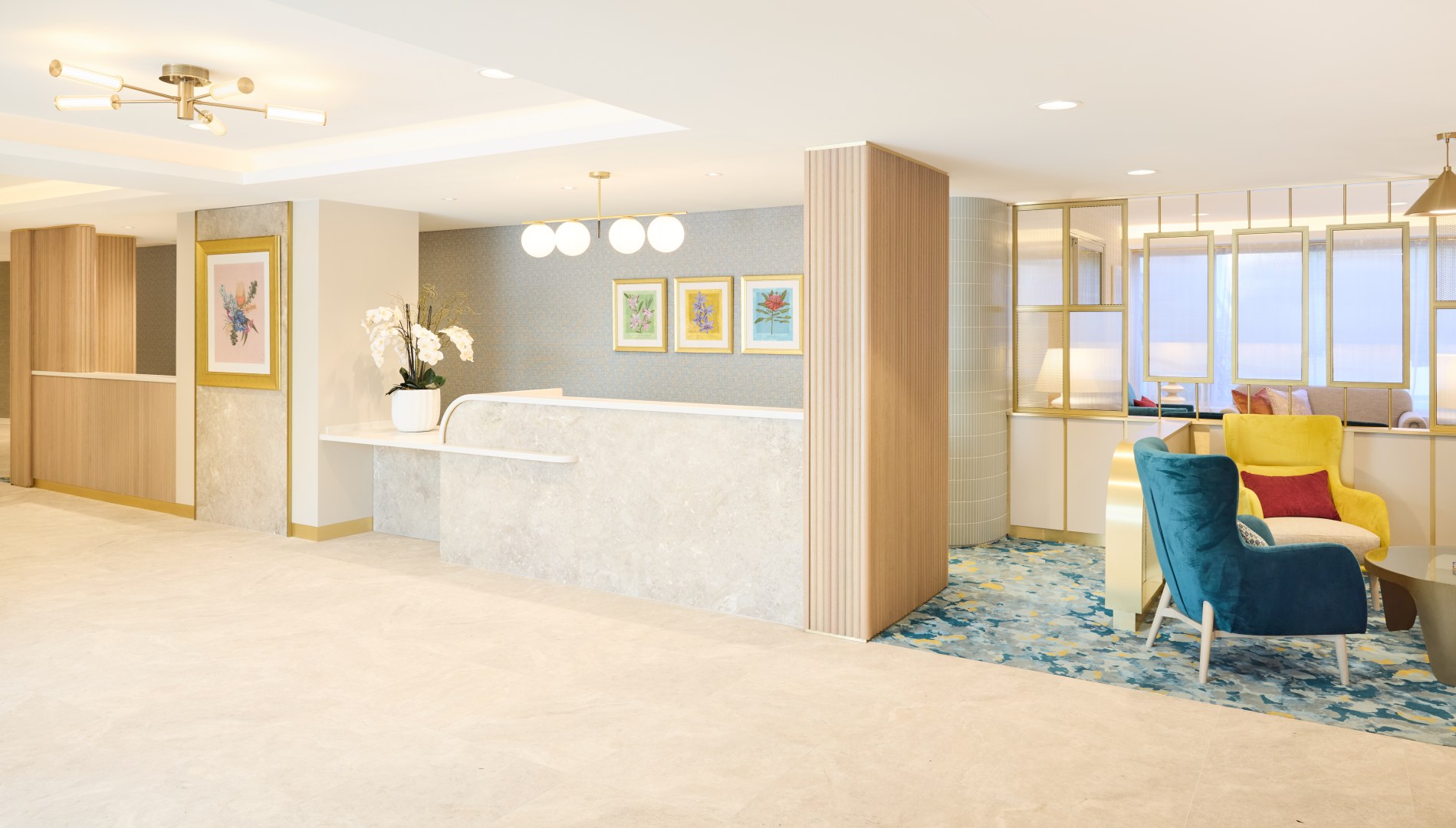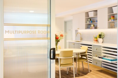 A complete re-build & refurbishment of an existing aged care facility into a state of the art contemporary - classic facility. Located in the suburb of Beecroft. Common Areas such as hair salon and cafe have been designed as up market commercial spaces with bright accents, like feature wallpapers & art. polytec Fluted glass screens designed to create smaller spaces within large open areas to encourage conversation. The harmonious blend of colors, textures creates timeless appeal.