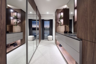 A comprehensive head to toe renovation of an existing three-level Mediterranean style home for a repeat client on the Dalkeith riverfront, this house introduced clean architectural lines and placed an emphasis on maximising the views with an indoor/outdoor lifestyle. Extensive use of Florentine Walnut Woodmatt cladding and cabinetry adds an organic quality to the home, creating the perfect balance of sophistication and style whilst still remaining warm and inviting.
