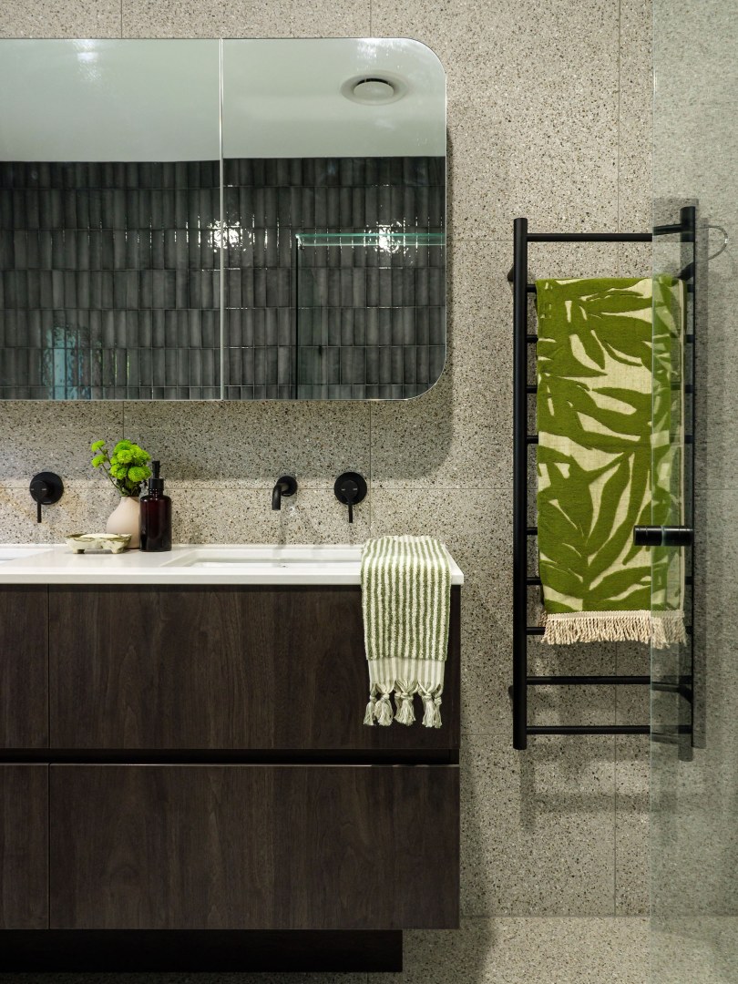 What started as bathrooms and a walk-in-robe design soon extended into hallway joinery, creating a more private home study space, laundry, and eventually a full kitchen renovation.